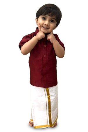 Boys Red Bandhani Dhoti Kurta