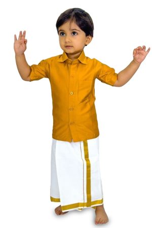 Boys Yellow Mor Pankh Dhoti Kurta