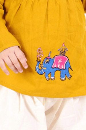 Mustard White Embroidered Dhoti Kurta