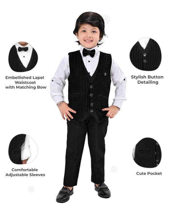 | Product Name | Boys Black 3 Pcs Vest Suit |