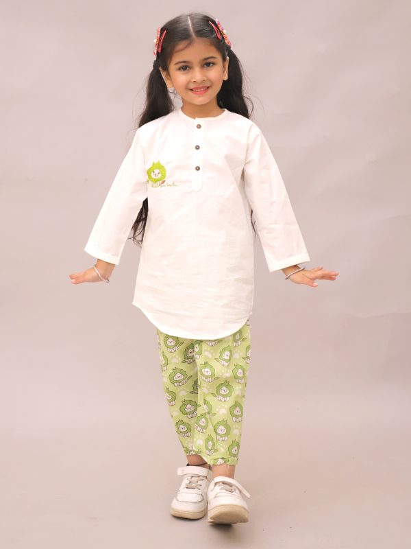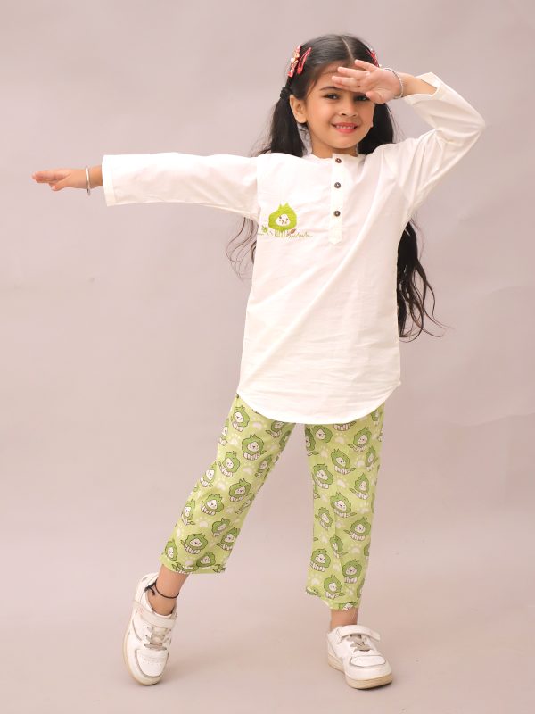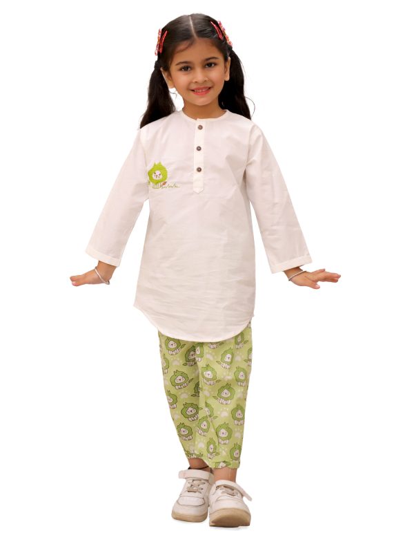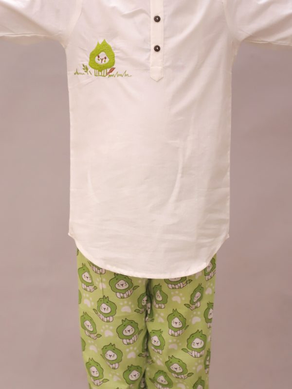 Kids Green Lion Printed Kurta pajama Night suit - Little Ginnie