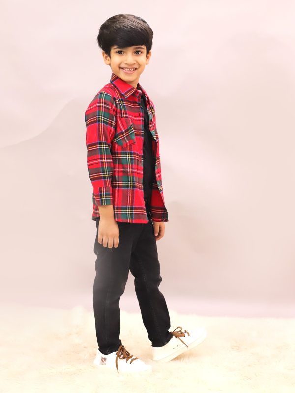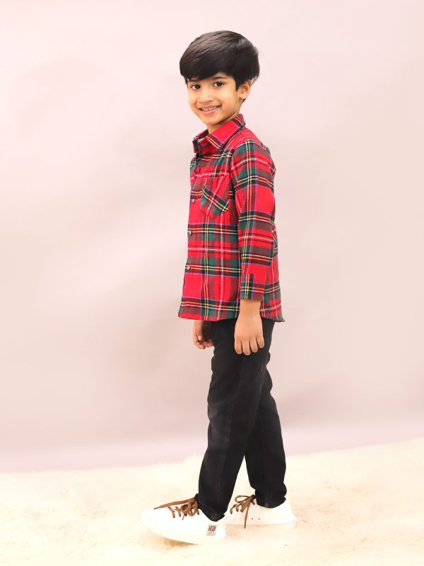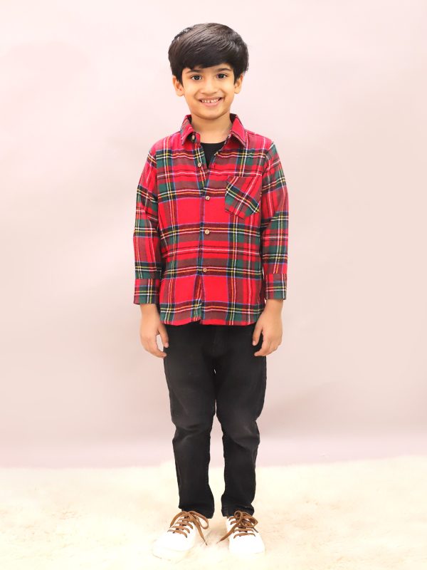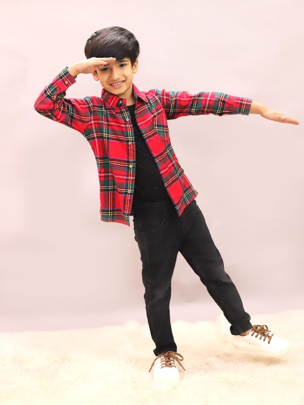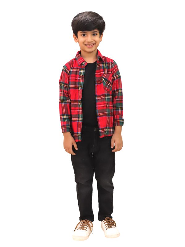 It is designed with a unisex appeal. Boys’ red and blue shirts are a reliable choice for active kids. This blue check shirt is a must-have for both boys and girls, offering both style and comfort in one easy-to-wear piece. Whether paired with jeans or layered over a t-shirt, this versatile shirt adds a smart and effortless touch to any outfit.