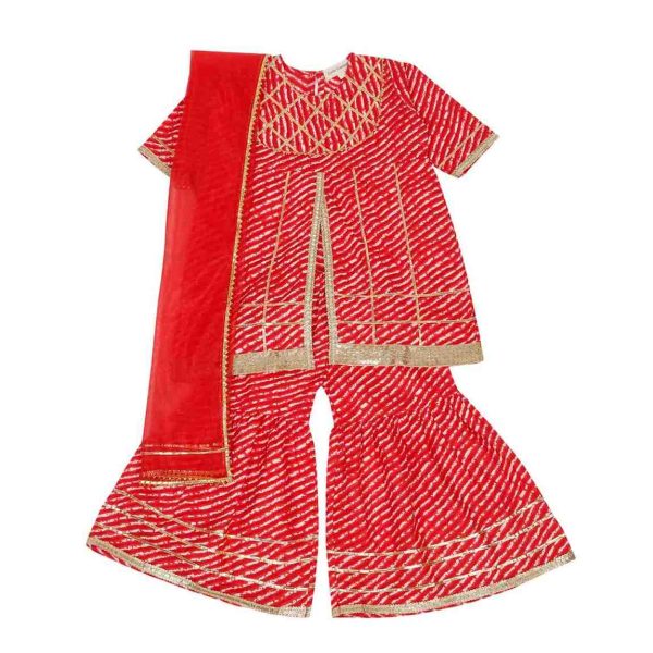 Here are the product specifications for the Red Lehriya Sharara Set.