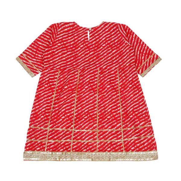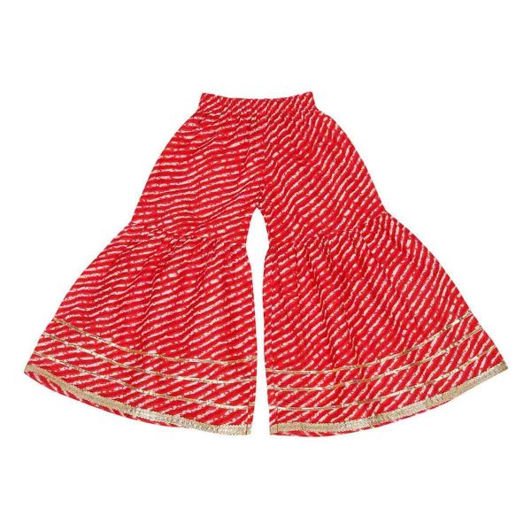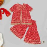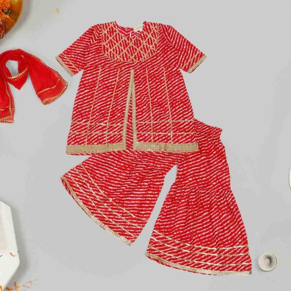 This Red Lehriya Sharara Set spells festive splendor for your little darling. The sharara dress for baby girl is endowed with exciting trendsetting Lehriya prints that radiate color into elegance. They are fabricated with great precision. It is made of soft, breathable cotton for longevity and comfort while allowing the baby girl the utmost freedom of movement.