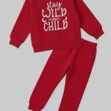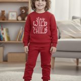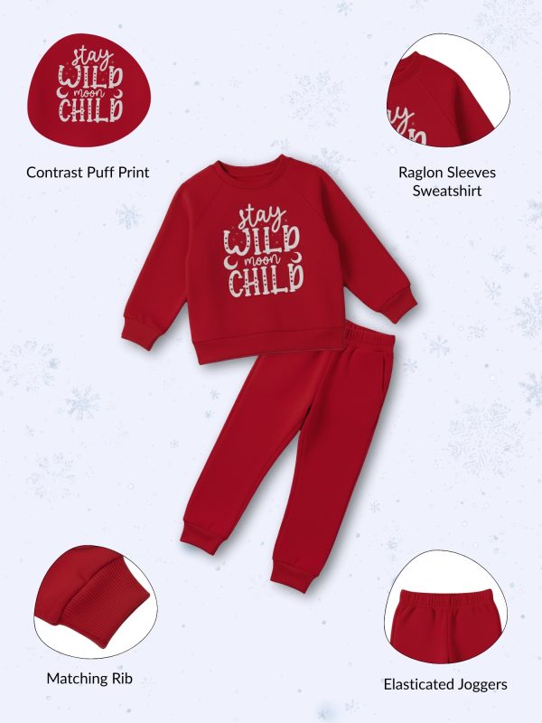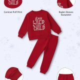 Red Printed Sweatshirt with Jogger - Little Ginnie