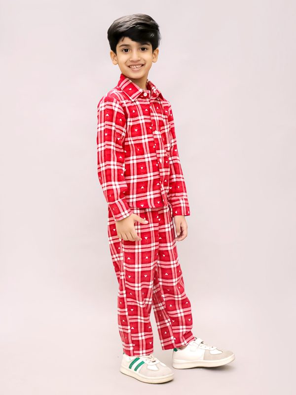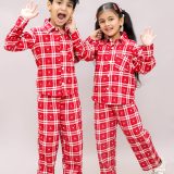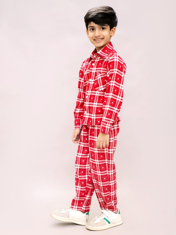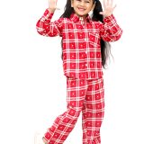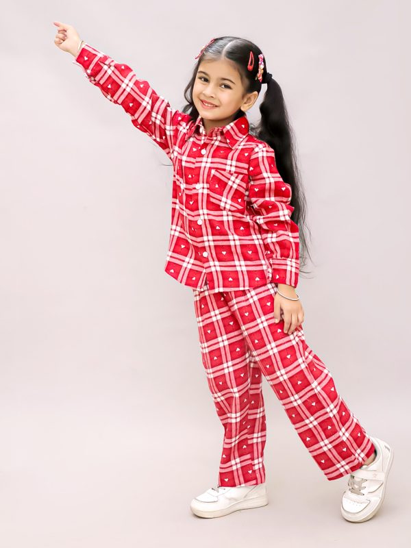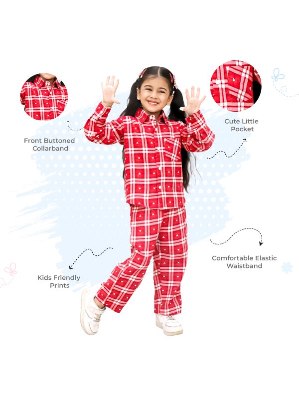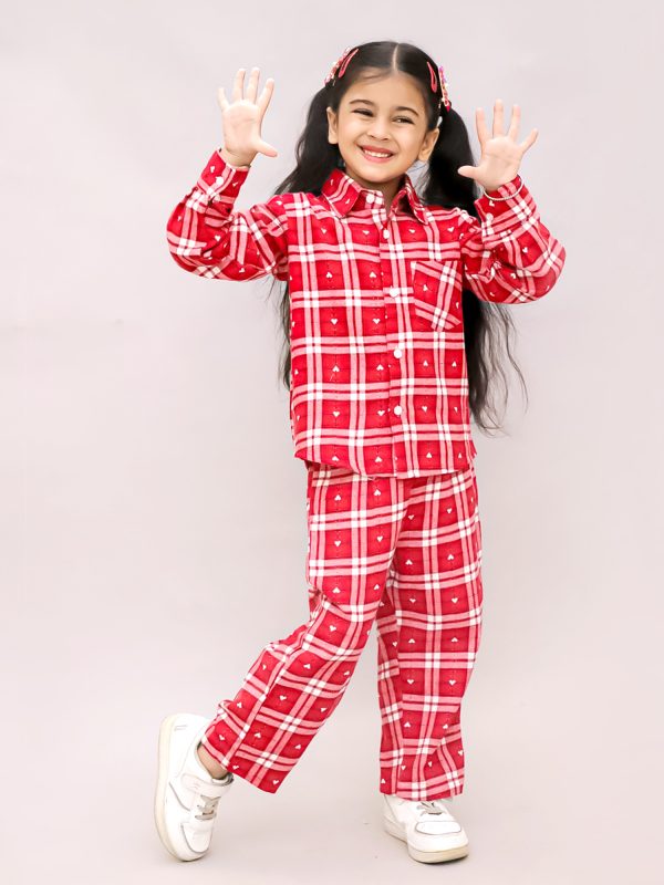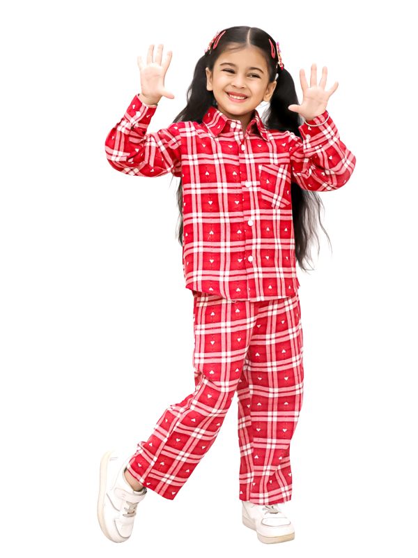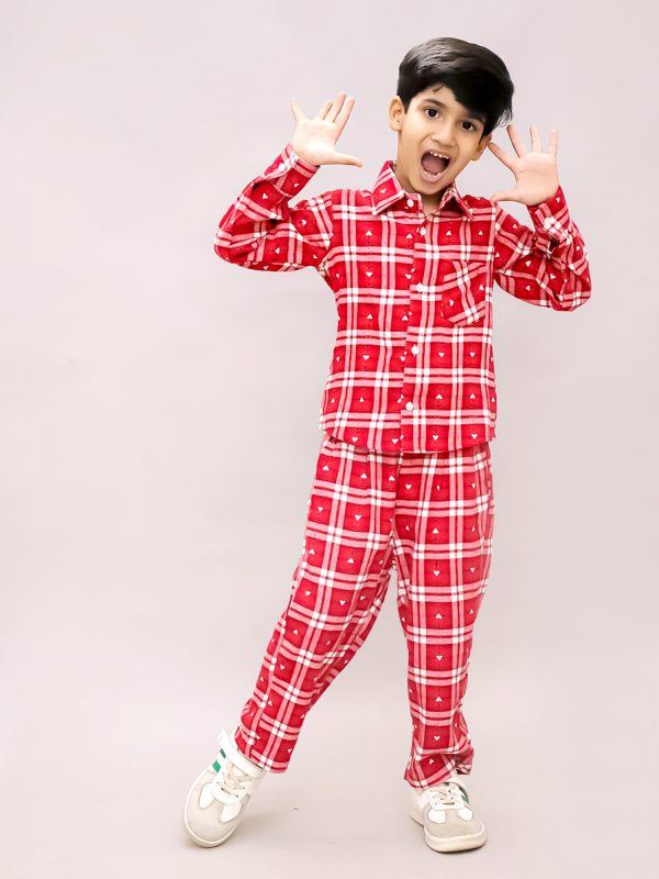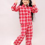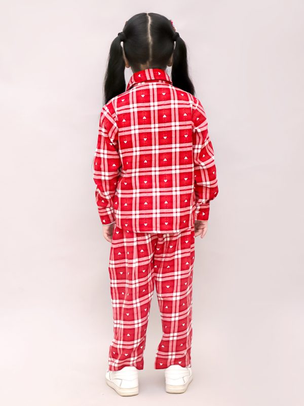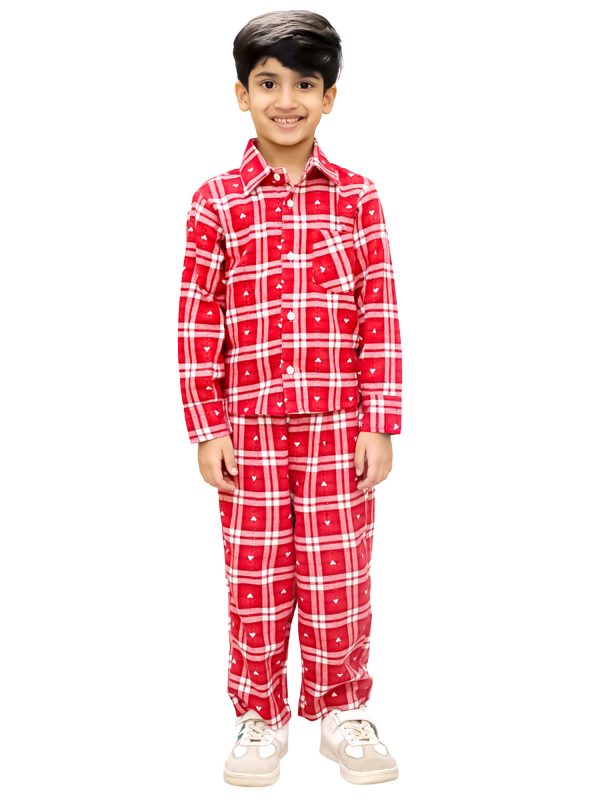 Red & White Heart Check Winter Night Suit - Little Ginnie